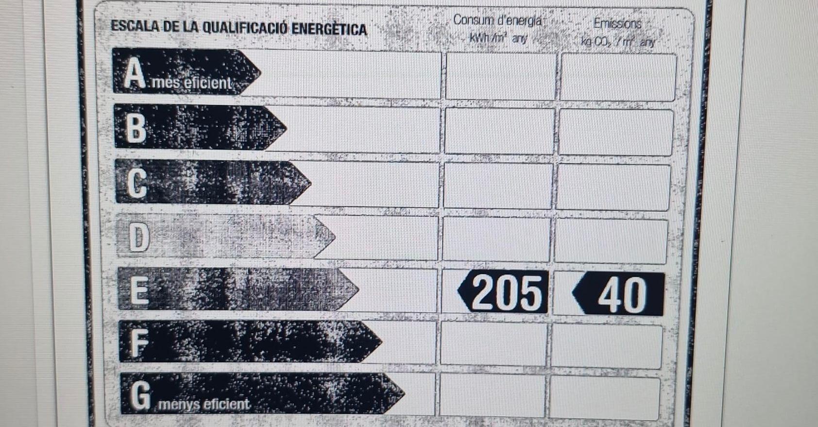 Eficiencia Energética.La vivienda cuenta con una calificación energética E, con un consumo de 201,4 kWh/m² al año y emisiones de CO₂ de 39,3 kg/m² al año.