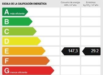 Consumo de energía: 147,3 kWh/m²/año (clase E) – Emisiones de CO₂: 29,2 kg/m²/año.