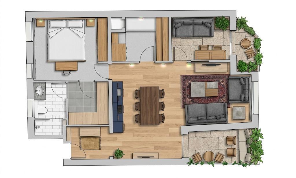 El piso dispone además de un baño completo, diseñado con materiales de calidad y pensado para el máximo confort.