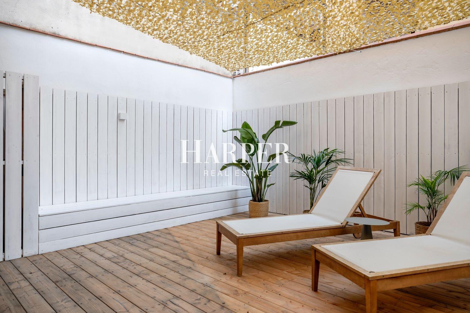Renovated Flat with Historic Charm in L’Antiga Esquerra de l’Eixample – Barcelona.In one of Barcelona’s most sought-after neighbourhoods, we present this elegant flat located on Carrer Casanova, just a few steps from the newly pedestrianised Consell de Cent. This prime location offers the perfect balance between the tranquillity of a residential area and the vibrant urban lifestyle of the Eixample, surrounded by cafés, local shops, and leafy public spaces. Fully renovated, the property blends the traditional character of the Eixample with modern comfort. High ceilings with exposed Catalan vaulting, original decorative mouldings, beautifully restored hydraulic tiles, and natural parquet flooring come together with contemporary finishes and a functional layout designed for comfortable living. The day area features a spacious, light-filled living room with direct access to an east-facing terrace—an inviting spot to relax or enjoy outdoor moments. The semi-open kitchen includes a cosy dining area and showcases an elegant, practical design. The flat also offers a second interior patio used as a laundry area. The night area includes a generous master suite of over 20 m² with a private bathroom, as well as two additional double bedrooms that share a full bathroom. An additional guest toilet is located at the entrance. All bedrooms are equipped with built-in wardrobes for excellent storage capacity. Newly installed double-glazed windows ensure outstanding thermal and acoustic insulation, creating a peaceful atmosphere in the heart of the city. Just a few metres from the building, a nearby car park offers rental spaces ranging from €150 to €190 per month. Expenses: IBI: €1,158/year | Community fees: €110/month. A perfect home for anyone seeking a move-in-ready property with historic character and contemporary comfort, located in one of Barcelona’s most desirable districts.